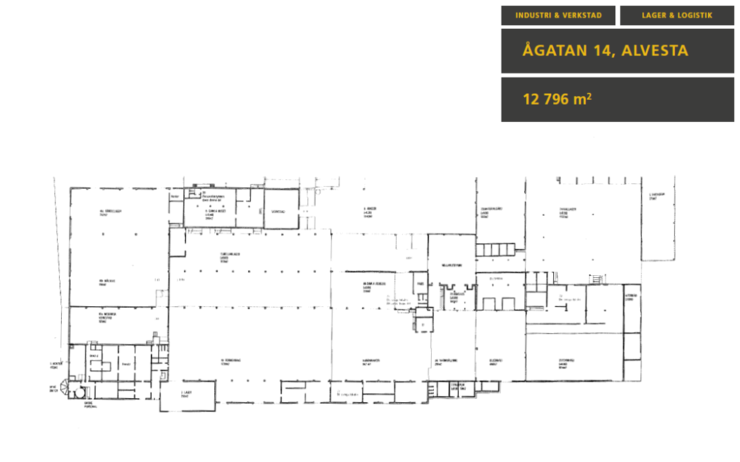 Byggnaden inrymmer idag kontor, personalutrymmen, produktionslokaler, lager och kallager.